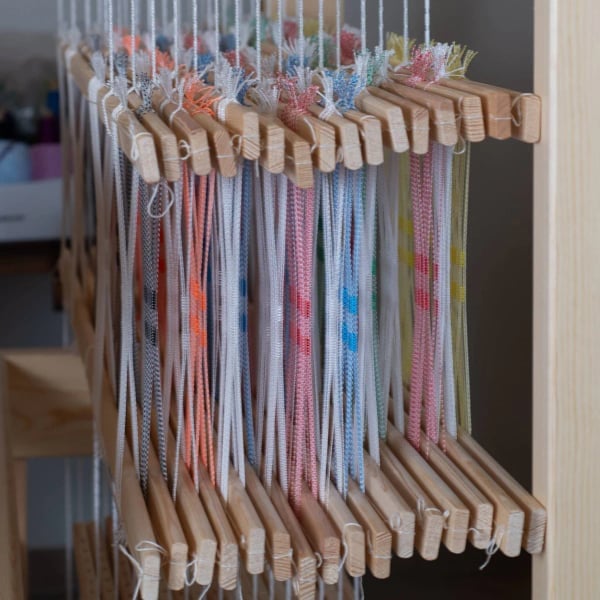 Die Litzen lassen sich einfach auf den Webstuhlschäften anbringen.